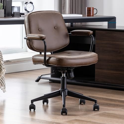 Ya-Home Retro Home Office Chair in PU Leatehr Height Adjustable Desk Chair with Armrest for Home Office/Study/Bedroom, Brown