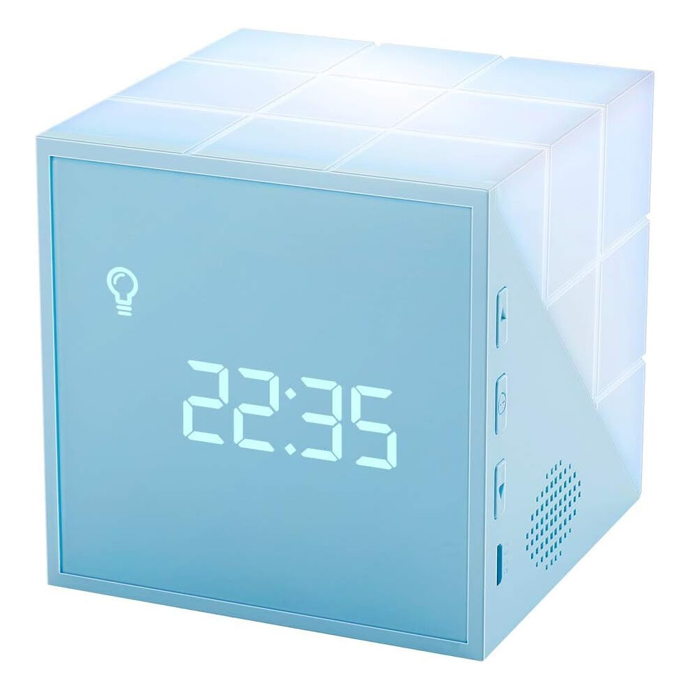 Blue LED Wooden Cube Alarm Clock, Sound-controlled LED night light Motion Sensor, Perfect for Home Office Bedside Table Desk, Elegant Digital Alarm Cl