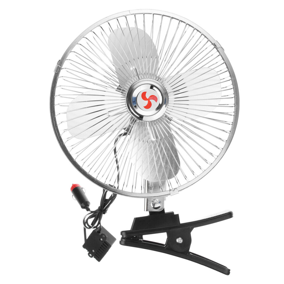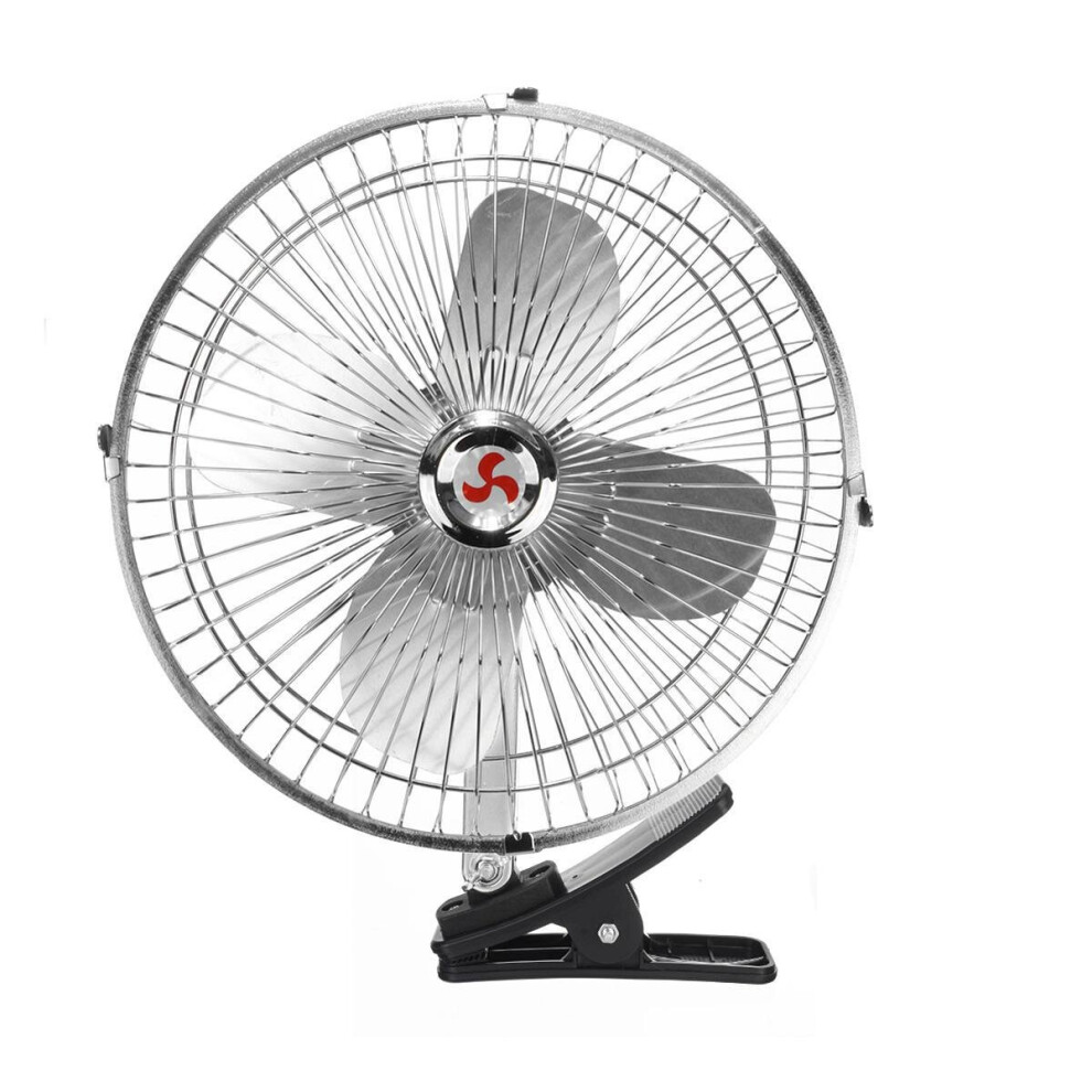 8 Inch 12V Car Electric Oscillating Fan with Clip 180 Degree Cooling Cooler Desk Table