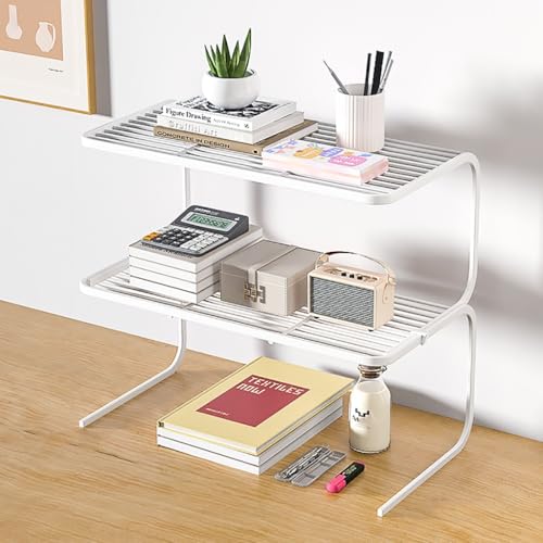 SPYQKHSH Small Metal Desktop Bookshelf,3 TierStorage Display Rack,Desk Supplies Organizers,for Home Office Desk,Living Room,Bedroom(C,28x22.5x20cm)