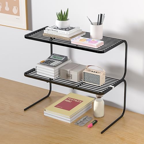 SPYQKHSH Small Metal Desktop Bookshelf,3 TierStorage Display Rack,Desk Supplies Organizers,for Home Office Desk,Living Room,Bedroom(B,28x22.5x20cm)