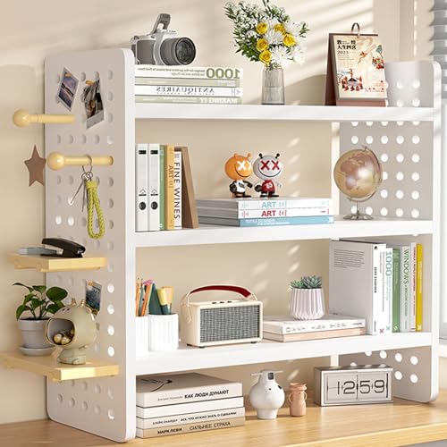 Wooden Desktop Bookshelf,Top Of Desk Shelf Organizer,with Pegboard Design,Adjustable Display Shelf For Computer Desk,for Study Bedroom Home Office(White,50cm/19.7in)