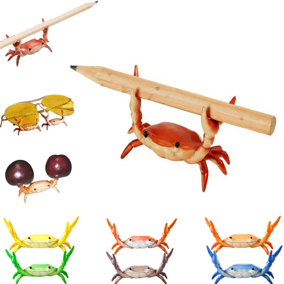 Cute Crab Pen Holder for Desk, Funny Resin Weightlifting Crabs Shaped Spoon Holders, Funny Desk Decor for, Home, Office Desk Accessories - Red