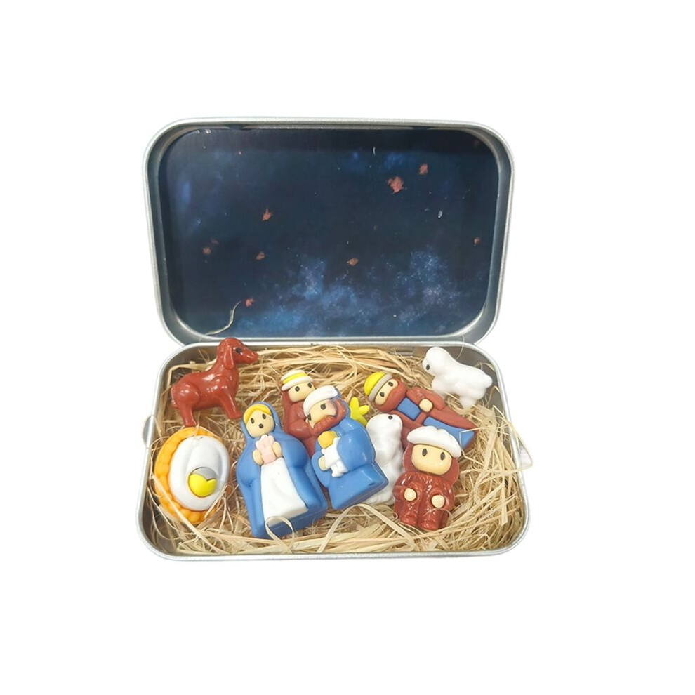 Christmas Nativity Set in A Tin Box, Handcrafted Portable Nativity Scene with Figurines,for Desk, Office, Home