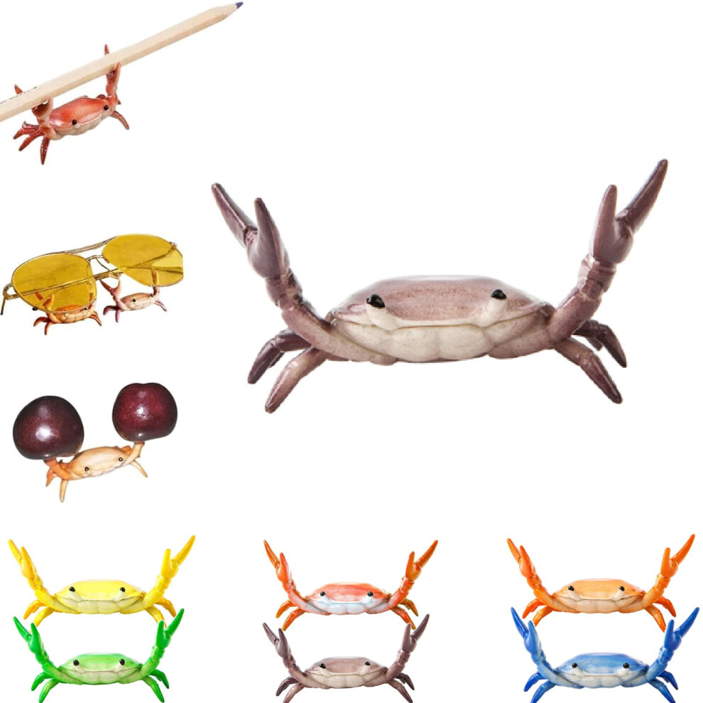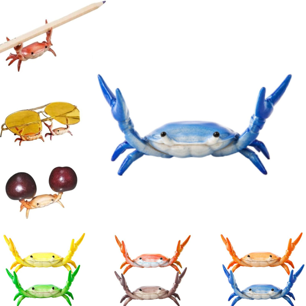 Cute Crab Pen Holder for Desk, Funny Resin Weightlifting Crabs Shaped Spoon Holders, Funny Desk Decor for, Home, Office Desk Accessories - Blue