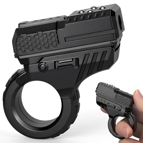 Fidget Gun Slider Toy, EDC Finger Ring Hand Roller Fidget Clicker Botton Desk Toy for Adults Kids, Plastic Textured Fingertip Pistol Focus Tool, Mini Gadget, Black