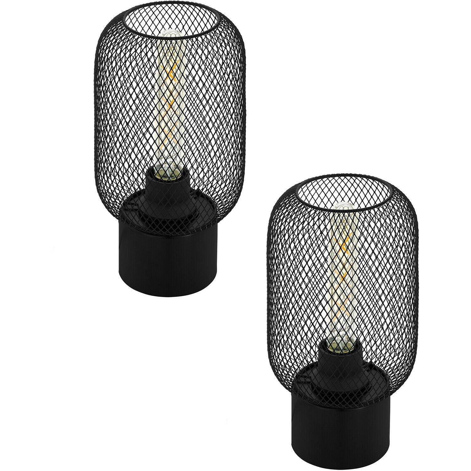 2 PACK Table Lamp Desk Light Black Steel Round Wire Mesh Shade 1x 60W E27