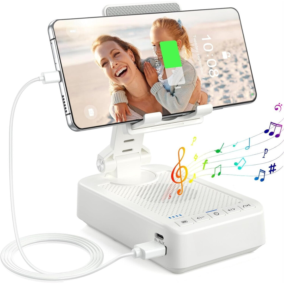Gifts for Men Women, Speaker Phone Stand with Function 360? Rotable Adjustable Phone Holder Surround Sound for Desk Fits Phones,Tablet (White)