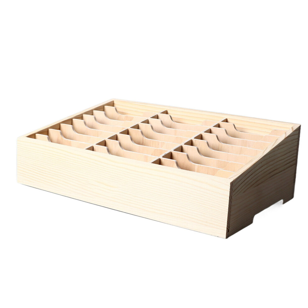Pine Wood 24-Grid Storage Box for Office Desk Items and Phones