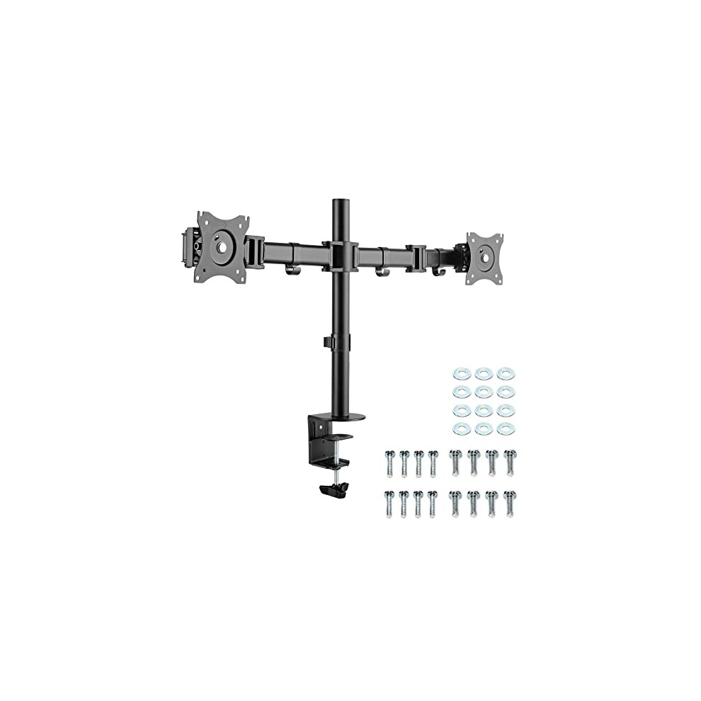 Gr8 Home Adjustable Black Metal LCD LED TV Computer Monitor PC Stand Holder Bracket Clamp Double Twin Arm Desk Mount 13"-27" Screen Home Office