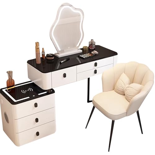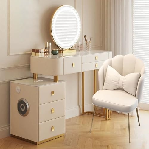 MESCXTY Smart Makeup Vanity Set - with Drawers & Charging Sheets Speakers Solid Wood Bedroom Desk Modern Design (White, 40 in)