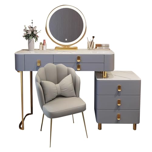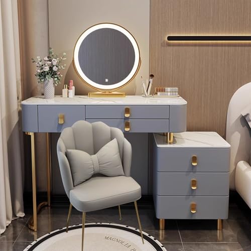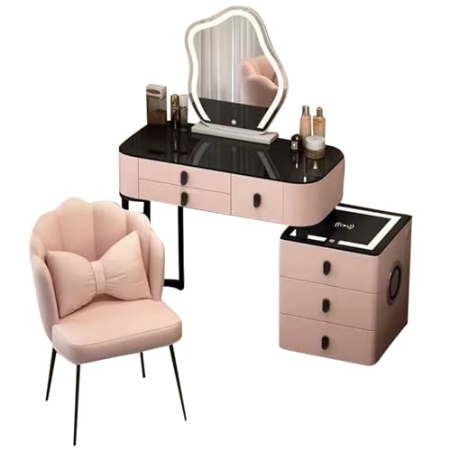 Table Make Up Vanity with Lights and Mirror Adjustable Brightness Vanity with Chair Desk Bluetooth Speakers Flexible Storage Space Bedroom