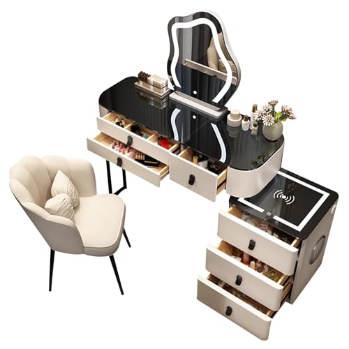 MESCXTY Smart Makeup Vanity Set - with Drawers & Charging Sheets Speakers Solid Wood Bedroom Desk Modern Design (Wood, 40 in)
