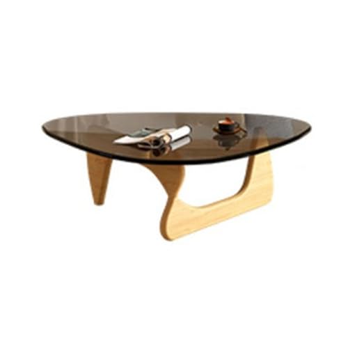 JUSKAQZYI white Irregular Coffee Table Solid Wood Transparent Small Side Desk Triangular Tripod Suitable for Bedroom Living Room Office with storage(Hyaline,Walnut color)