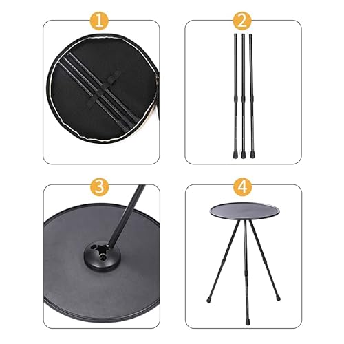 POENVFPO Mini Table Portable Mini Tea Coffee Desk Aluminum Alloy Tripod Table 60kg Load Ideal for Camping Hiking and Outdoor Activities (Black)