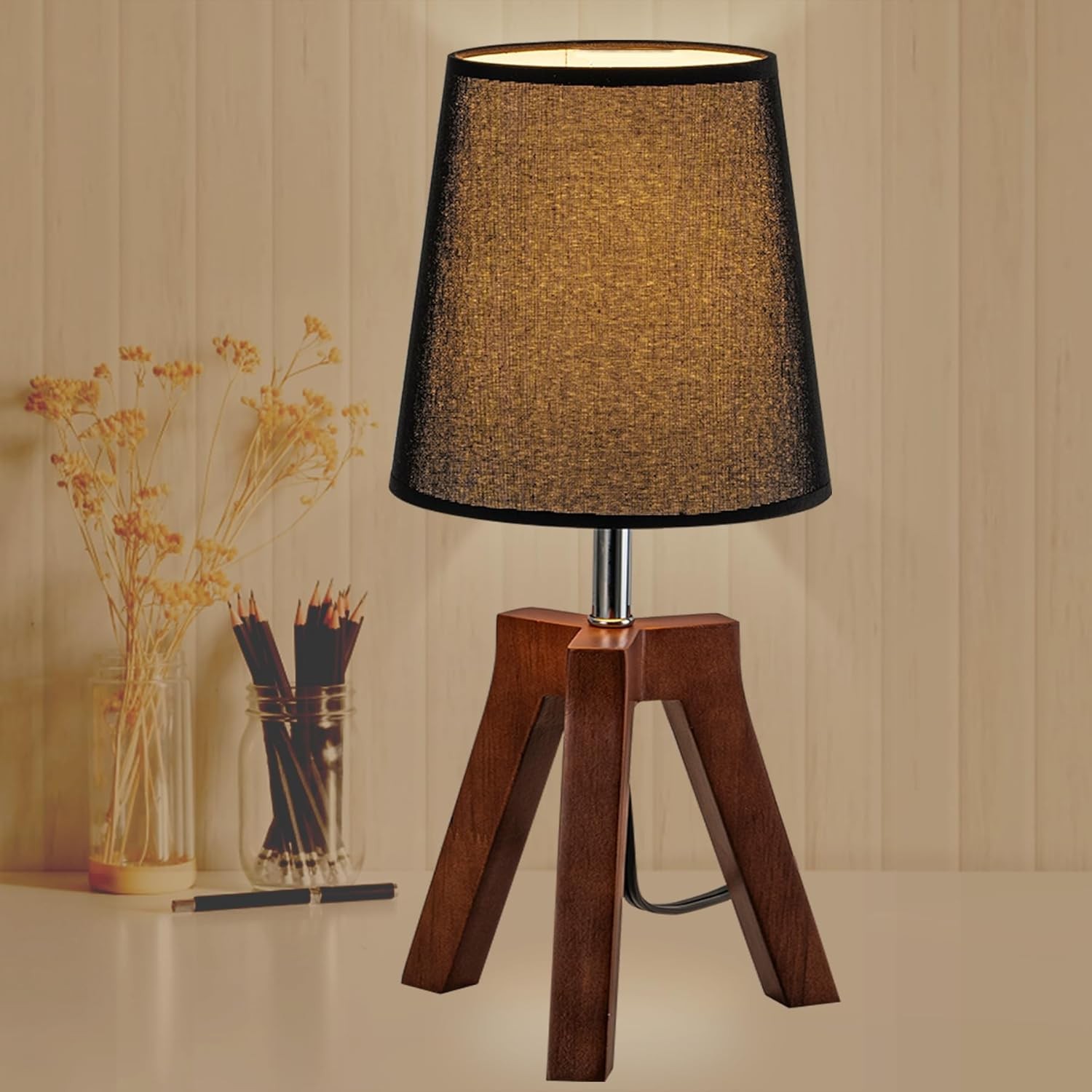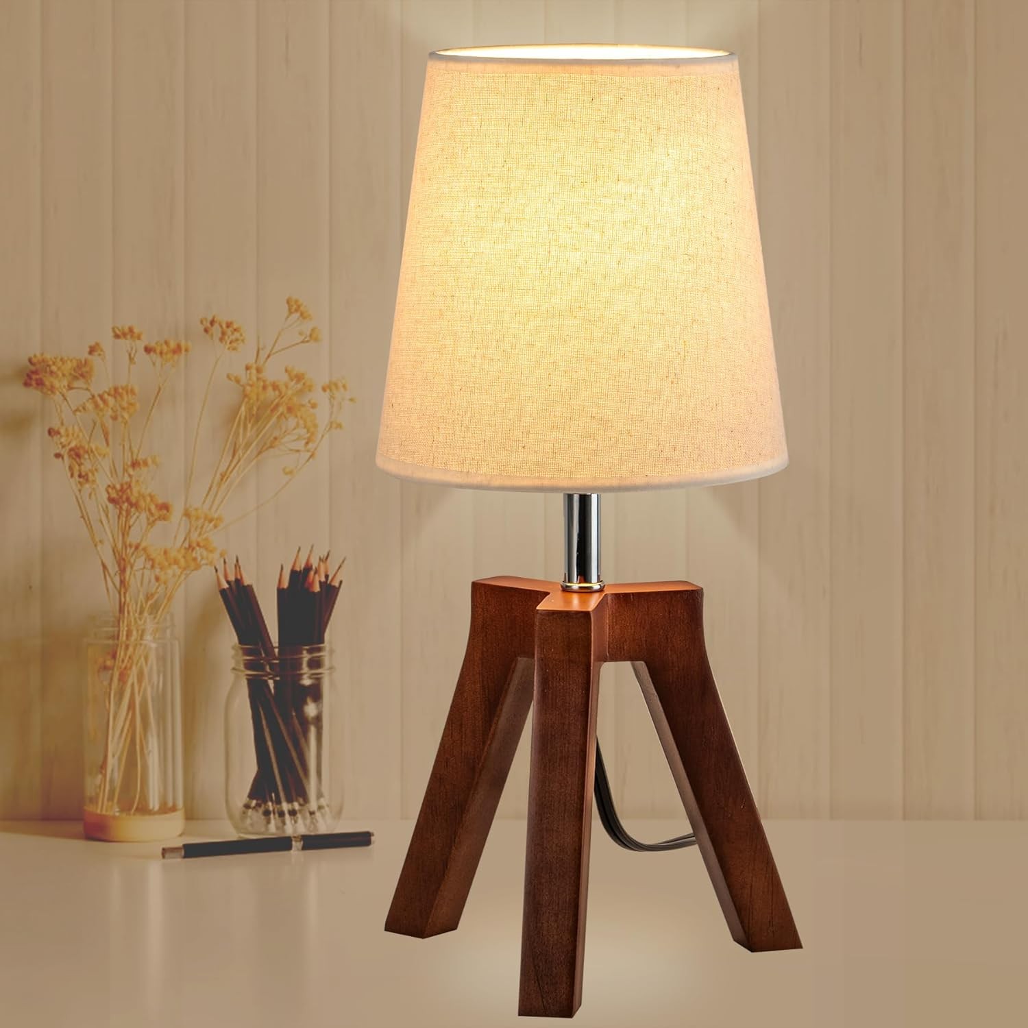 Dreamholder Wood Bedside Table Lamp, Tripod Desk Lamp with On-Off Switch, Night