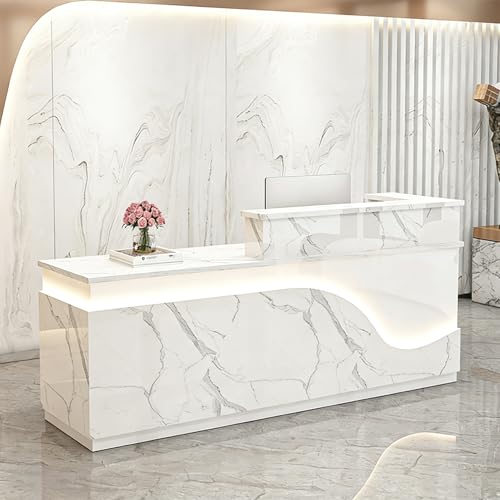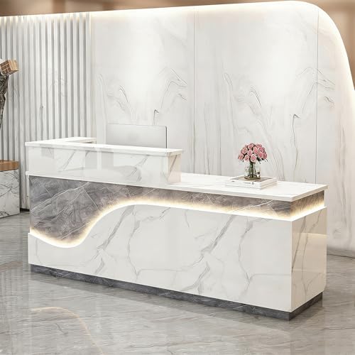 yurstcggh Office Reception Desk,Modern Checkout Front Desk Reception Counter With Drawer Storage,with LED Light,for Salons,Lobbies,Office Buildings,Shopping Malls 180×60×100cm