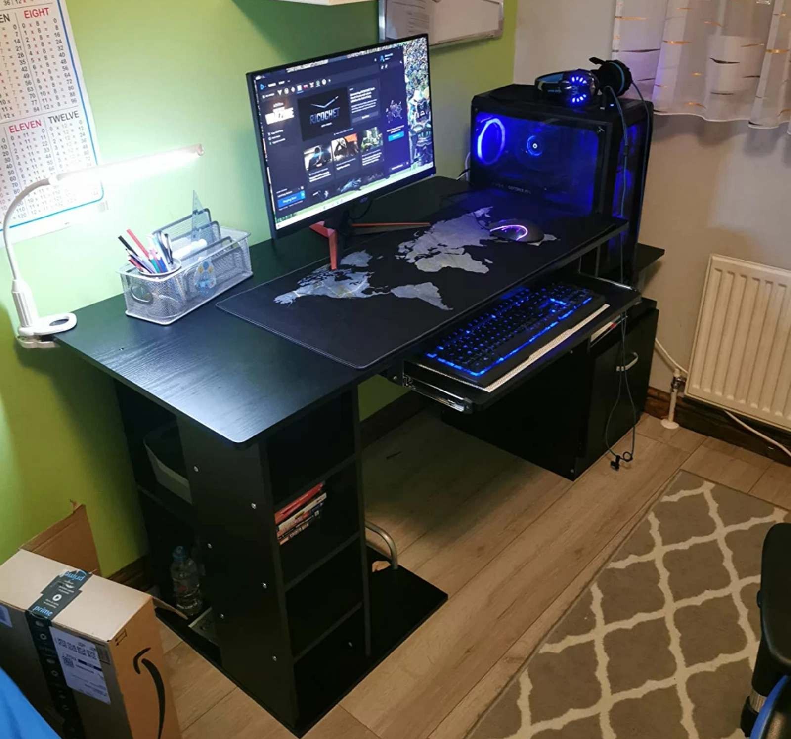 Large Computer Desk with Shelves Drawer Keyboard Tray Home Office Workstation