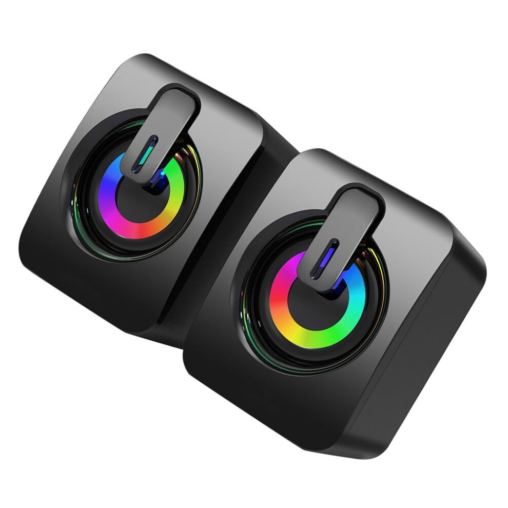 LED Gaming Speakers Set 2 Color Changing Lights Stereo USB-C 3.5mm Desktop Audio