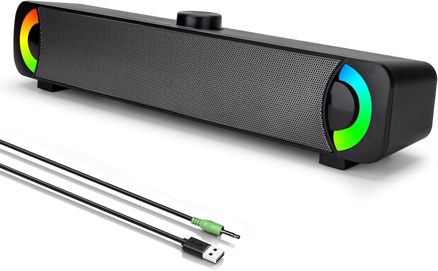 Jectse USB Computer Speakers, HiFi Sound Desktop Sound Bar, Gaming Mini Sound Bar External Speaker with Volume Knob, 3.5mm Wired PC Speakers for PC Laptop Tablet for PS5