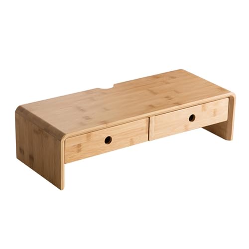 Simcat 2 Tier Monitor Stand with Drawers Wooden Desktop Riser and Cable Management Home Office (Natural, 50x20x13cm)