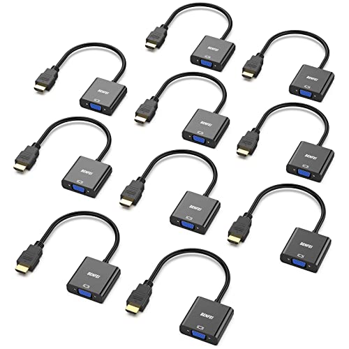 BENFEI HDMI to VGA, 10 Pack Gold Plated HDMI to VGA Adapter (Male to Female) for Computer, Desktop, Laptop, PC, Monitor, Projector, HDTV, Chromebook, Raspberry Pi, Roku, Xbox and More