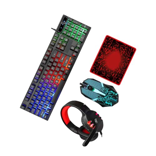 HOMSFOU Wired Rgb Usb Keyboard Mouse Headset and Mousepad Combo for Gaming and Office Use, Computer Keyboard Mouse Set Illuminated Keys and Comfortable Headset, Pc Accessories Bundle for Desktop