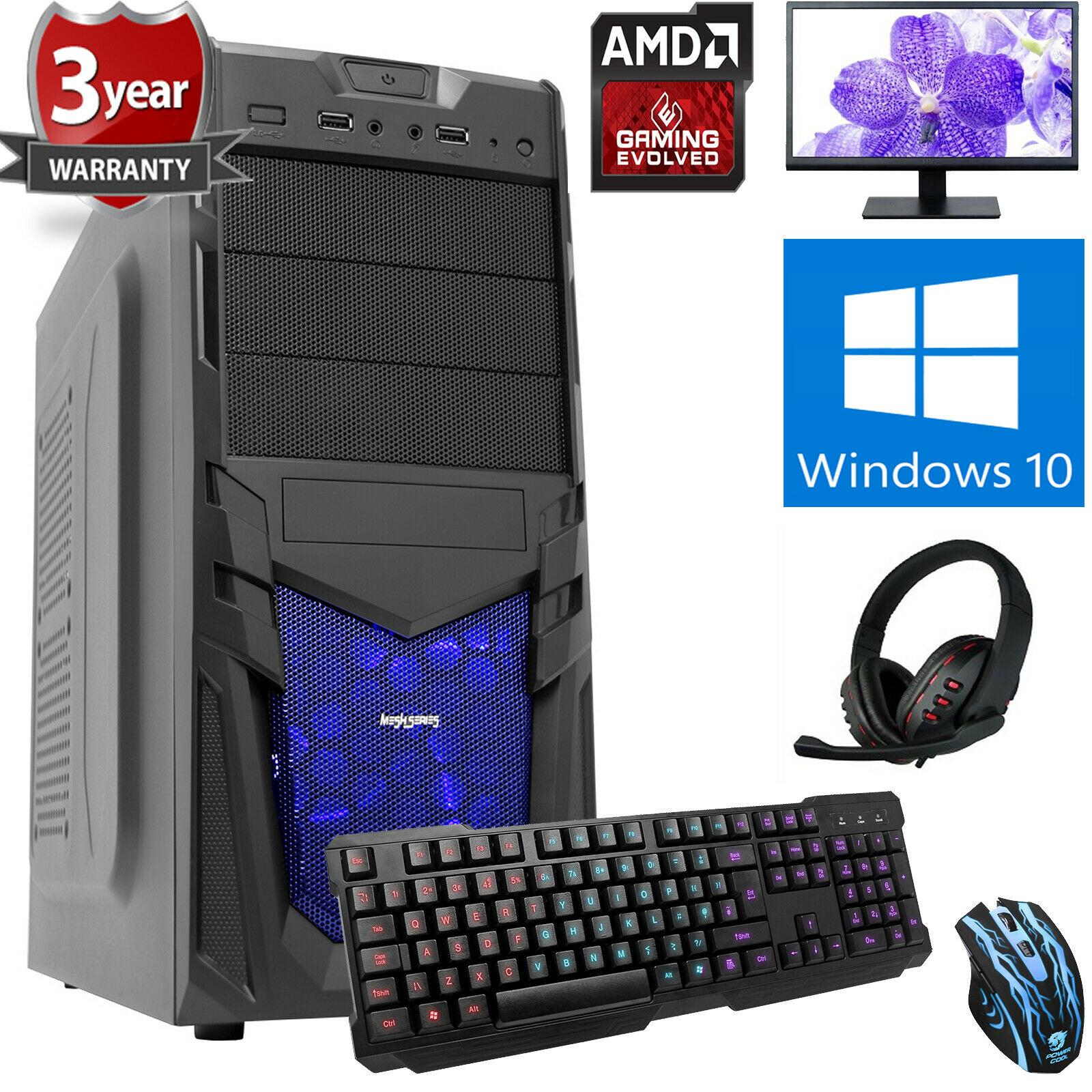 Fast AMD Quad Core 8GB 1TB Desktop Gaming PC Computer Bundle Windows 10 PRO CR
