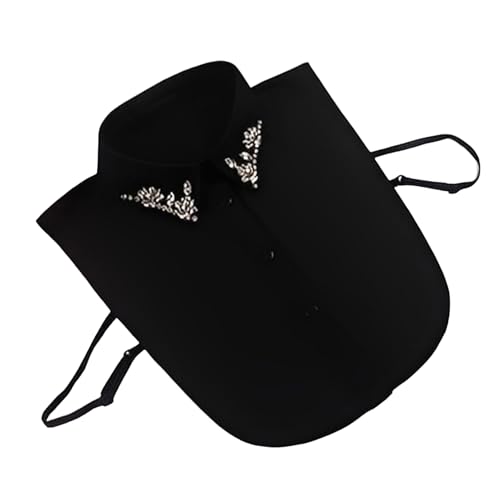 Shinesline Vintage Women Fake Half Shirt Collar with Diamond Bead/Detachable Blouse Collar Tie/Black