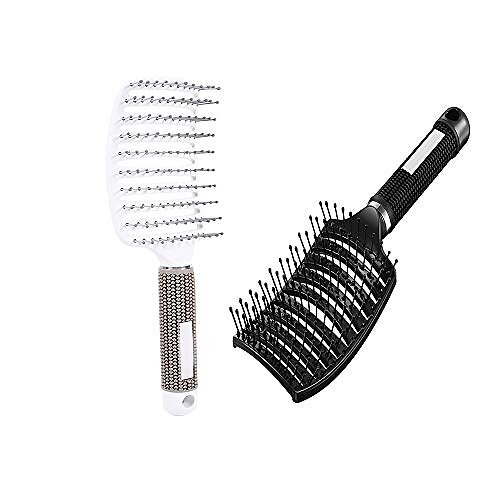 (Black) Boar Bristle Hair Brush Curved and Vented Detangling Hair Brush
