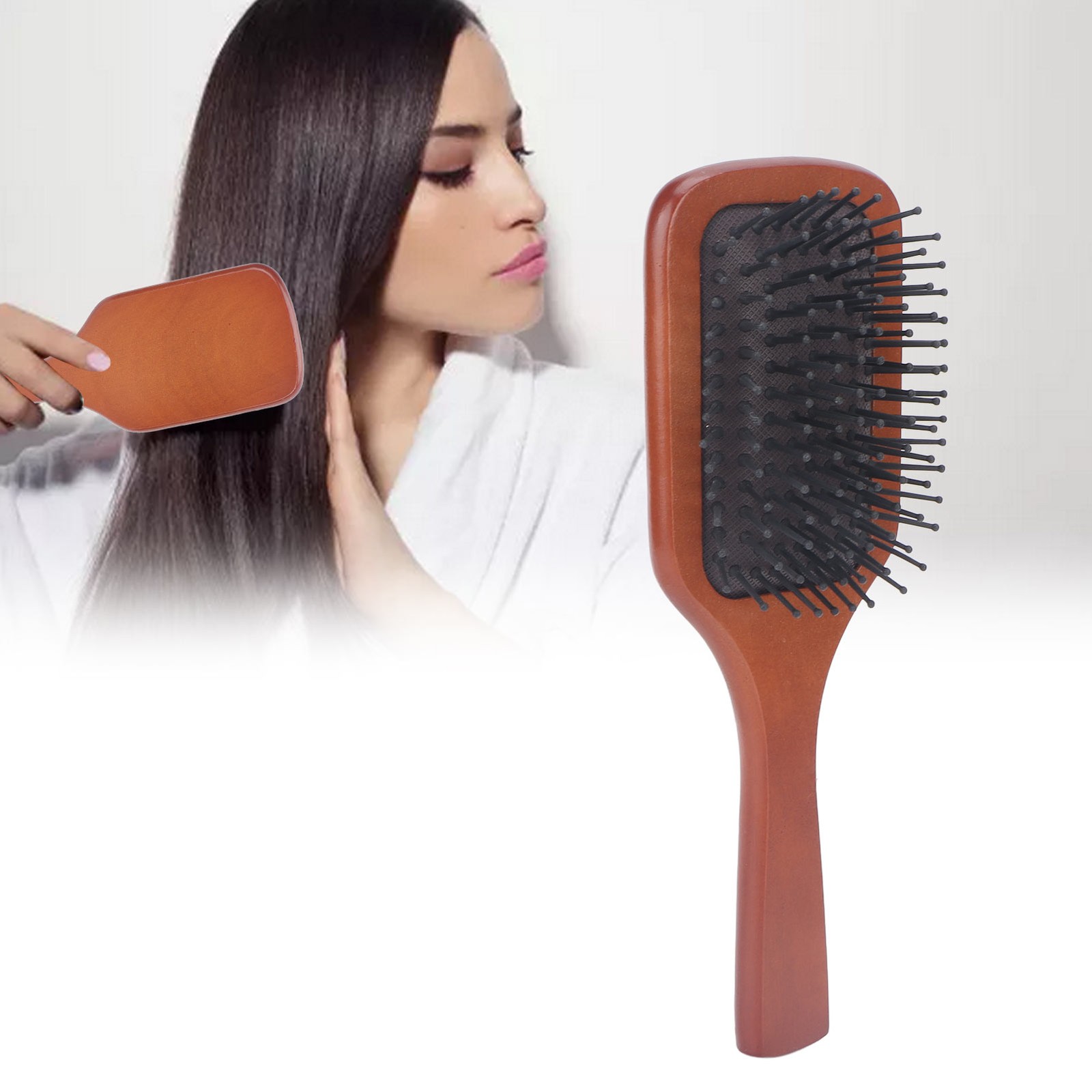 Paddle Hair Brush Wooden Handle Easy Detangling Scalp Massage Hair Brush Com TOU