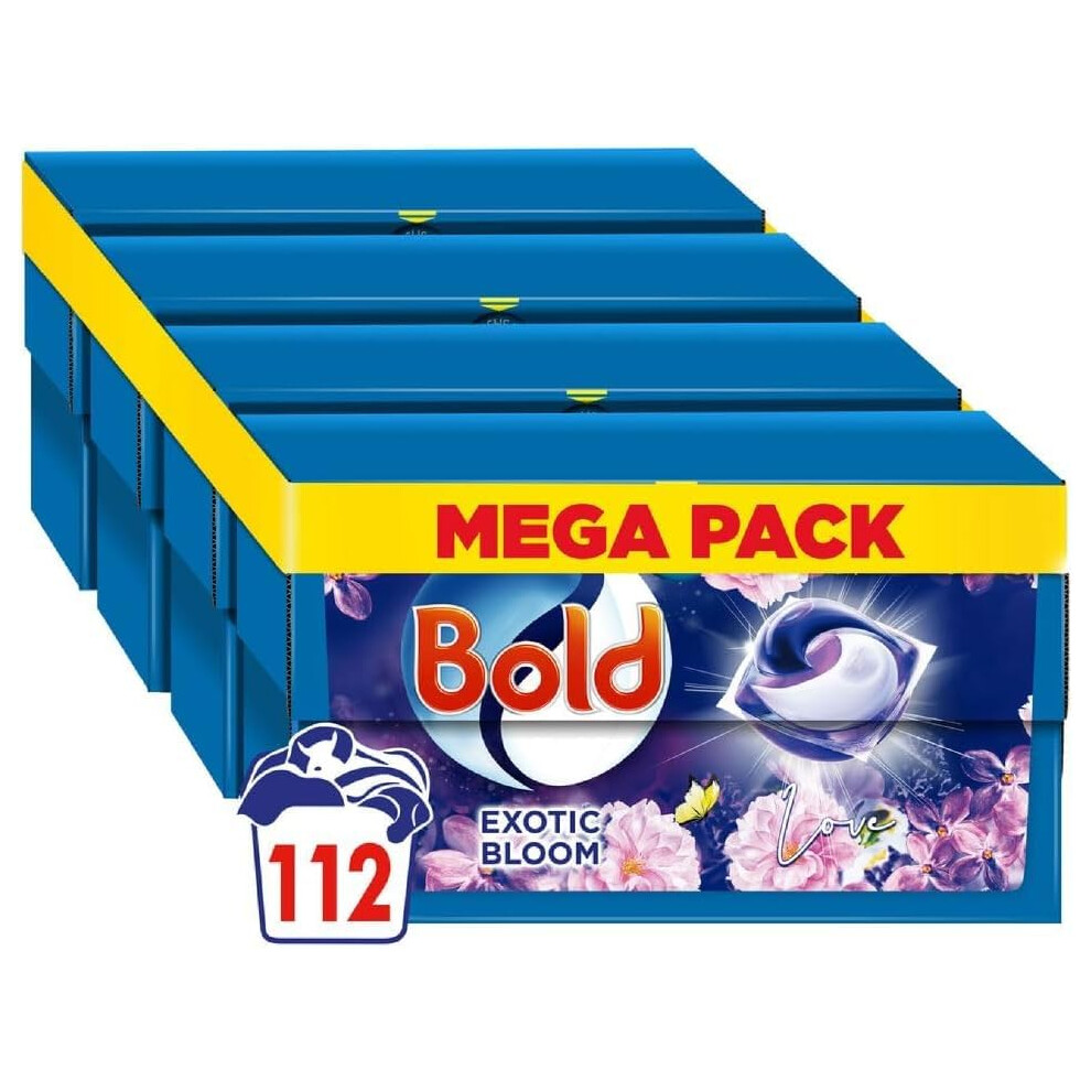 Bold All-in-1 PODS Laundry Detergent Washing Liquid Tablets/Capsules, 112 Washes (4x 28), Stain Remover For Clothes, Exotic Bloom, For Brilliant Clean