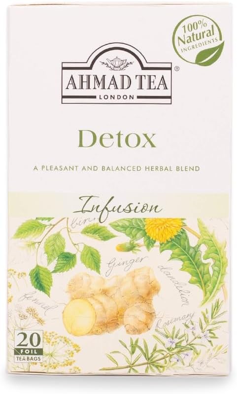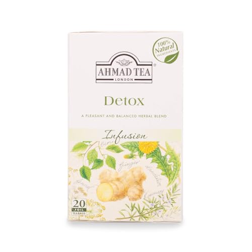Ahmad Tea Detox Tea | Fruit & Herbal Infusion | Ginger, Dandelion, Nettle, Peppermint, Fennel, Birch leaves - 20 Teabag Sachets