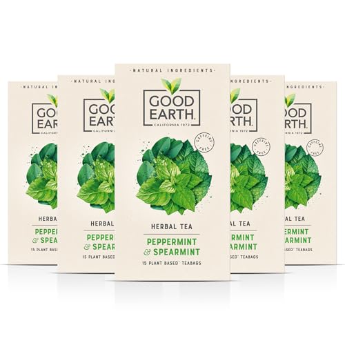 Good Earth Tea Co. Peppermint & Spearmint Tea Bags – Naturally Caffeine-Free Detox Tea with Bold Minty Flavour - 5 x 15 Biodegradable Herbal Tea Bags