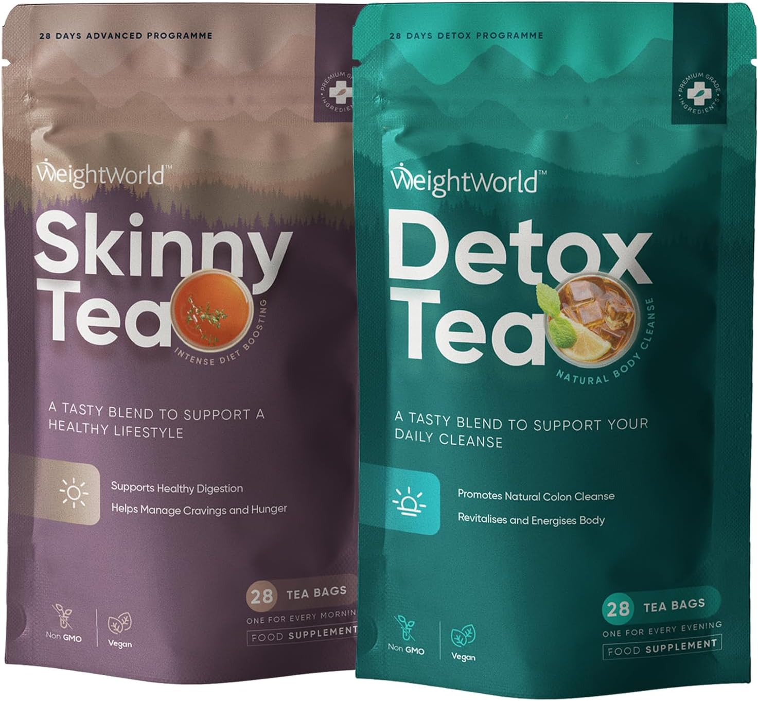 Skinny & Detox Tea Combo | Green Tea, Spearmint, Dandelion Root, Ginger, Lemongrass, Moringa & Oolong | For Morning & Night Routines | 56 Bags | 28 Days Programme | Zero-Calorie Herbal Blend