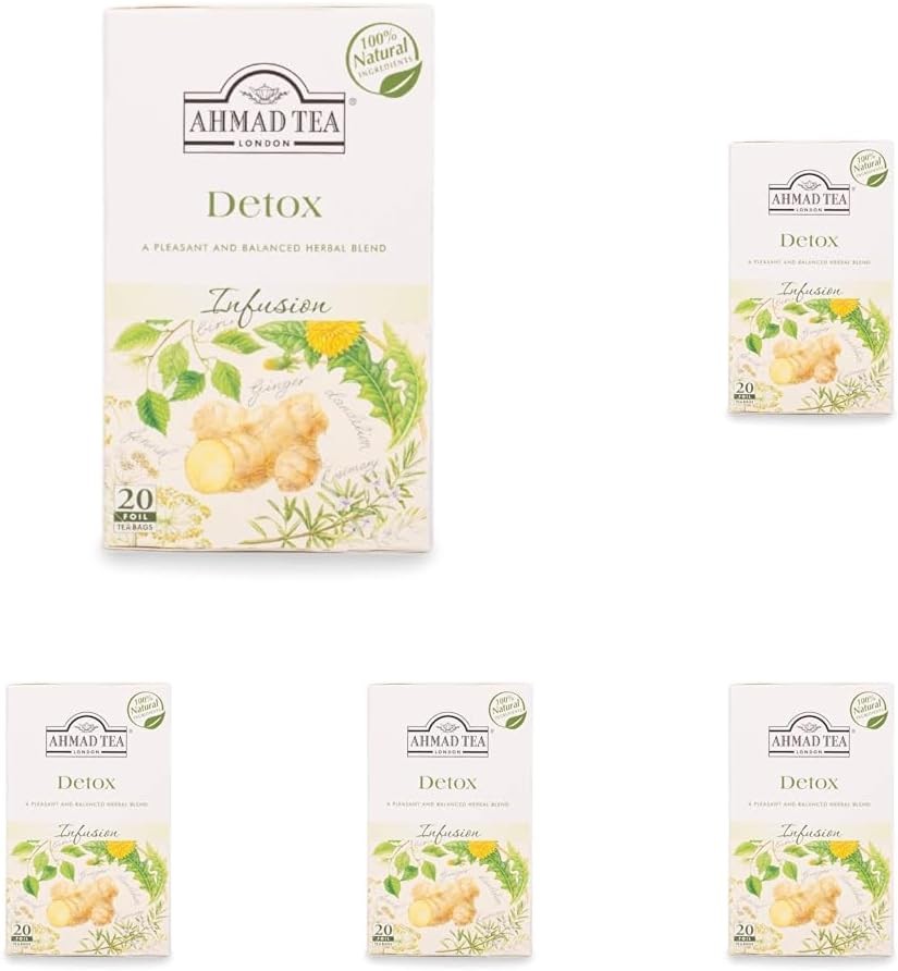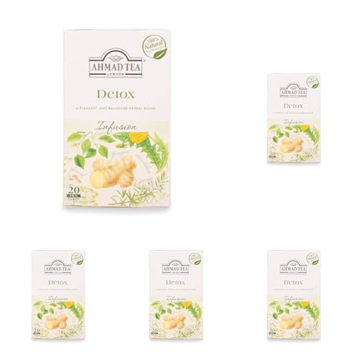 Ahmad Tea Detox Tea | Fruit & Herbal Infusion | Ginger, Dandelion, Nettle, Peppermint, Fennel, Birch leaves - 20 Teabag Sachets (Pack of 5)