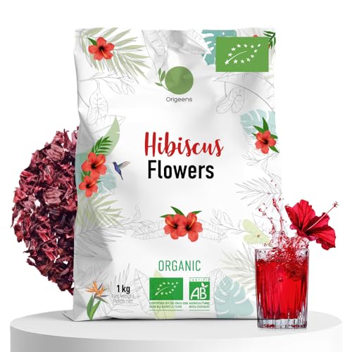 ORIGEENS HIBISCUS TEA Organic 1kg Premium Grade | Hibiscus Flower for Infusions, Iced Tea, Karkade | Dried Hibiscus Flowers, Draining Detox Tea