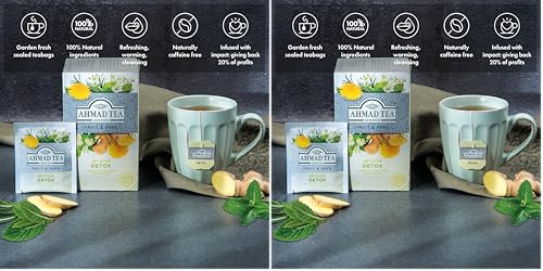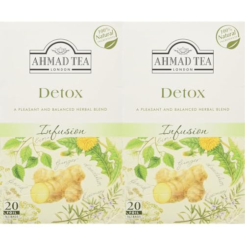 Ahmad Tea Detox Tea | Fruit & Herbal Infusion | Ginger, Dandelion, Nettle, Peppermint, Fennel, Birch leaves - 20 Teabag Sachets (Pack of 2)