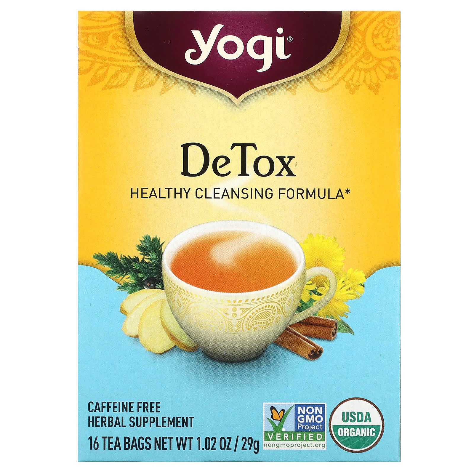 Yogi Tea, Detox Dandelion Burdock Root, Organic Herbal Tea, Naturally Caffeine