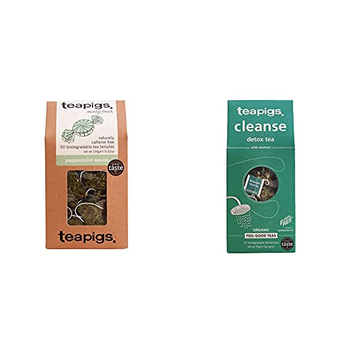 Tea Pigs Peppermint Herbal Tea Bags Made With Whole Leaves (1 Pack of 50 Teabags) & Cleanse Detox Tea, 15-Count
