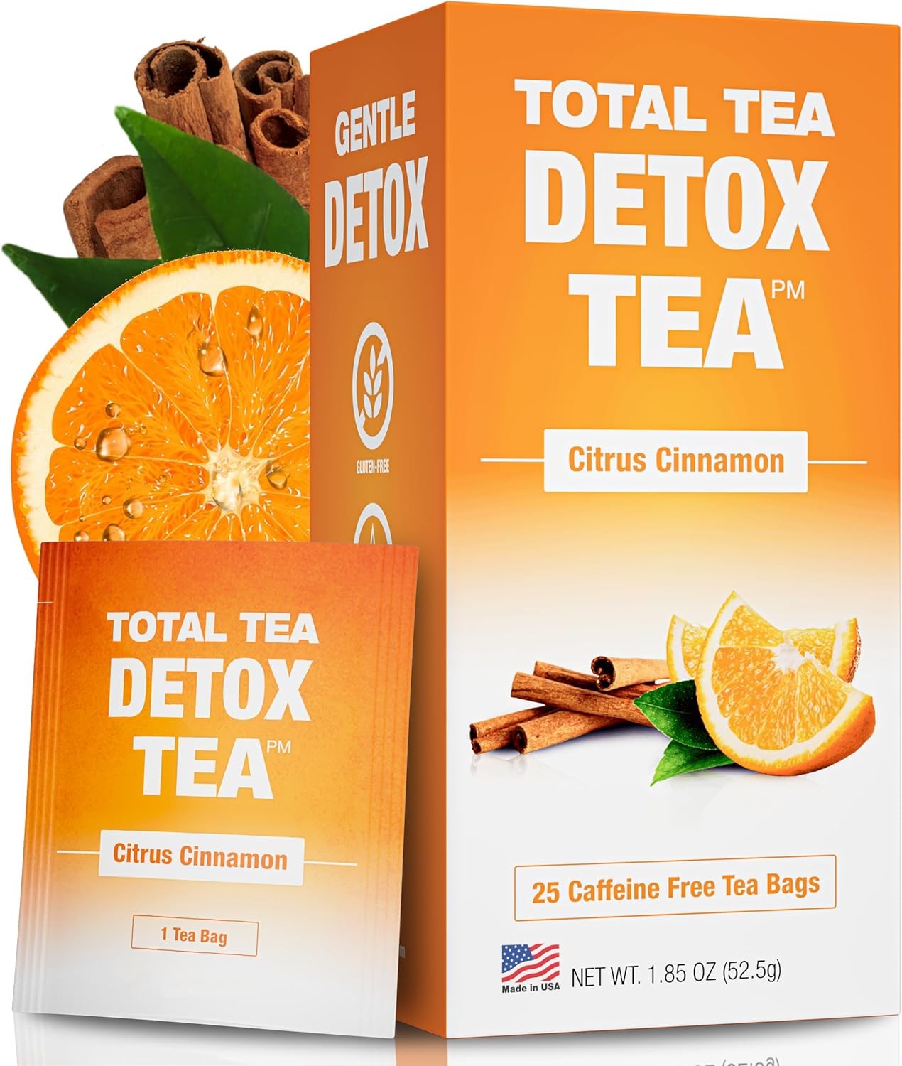 Total Tea Slimming Detox Tea Caffeine Free, Herbal Blend with Chamomile, Hibiscus and Ginger Root for Colon Cleanse Weight Management Drinks – Natural Citrus&Cinnamon for Digestive Health (25 Bags)
