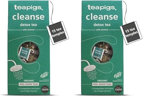 Teapigs Organic Cleanse Detox Tea Made With Whole Leaves and Herbs (2 Pack of 15 Temple Tea Bags) Feel Good Range