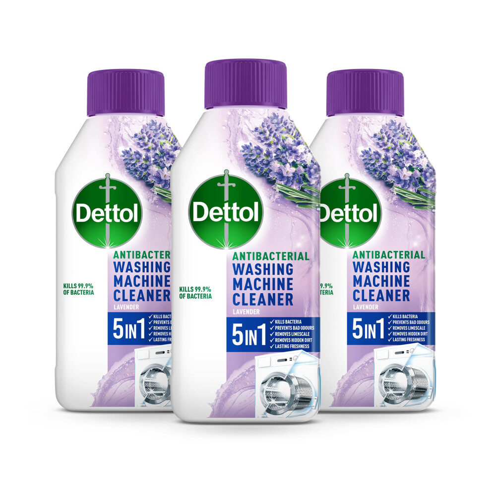 Dettol Washing Machine Cleaner, Lavendar, 250ml (3 x 250ml, Total 750ml), Drum Descaler, Limescale Remover, Antibacterial, Lasting Freshness, Disinfectant, Laundry