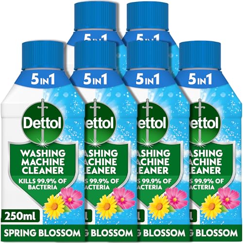 Dettol, Washing Machine Cleaner, Spring Blossom, 1.5L (250ml x 6pck) Antibacterial, Removes Bacteria, Odours, Limescale and Hidden Dirt, Lasting Freshness, Kills 99.9 Percent of Bacteria