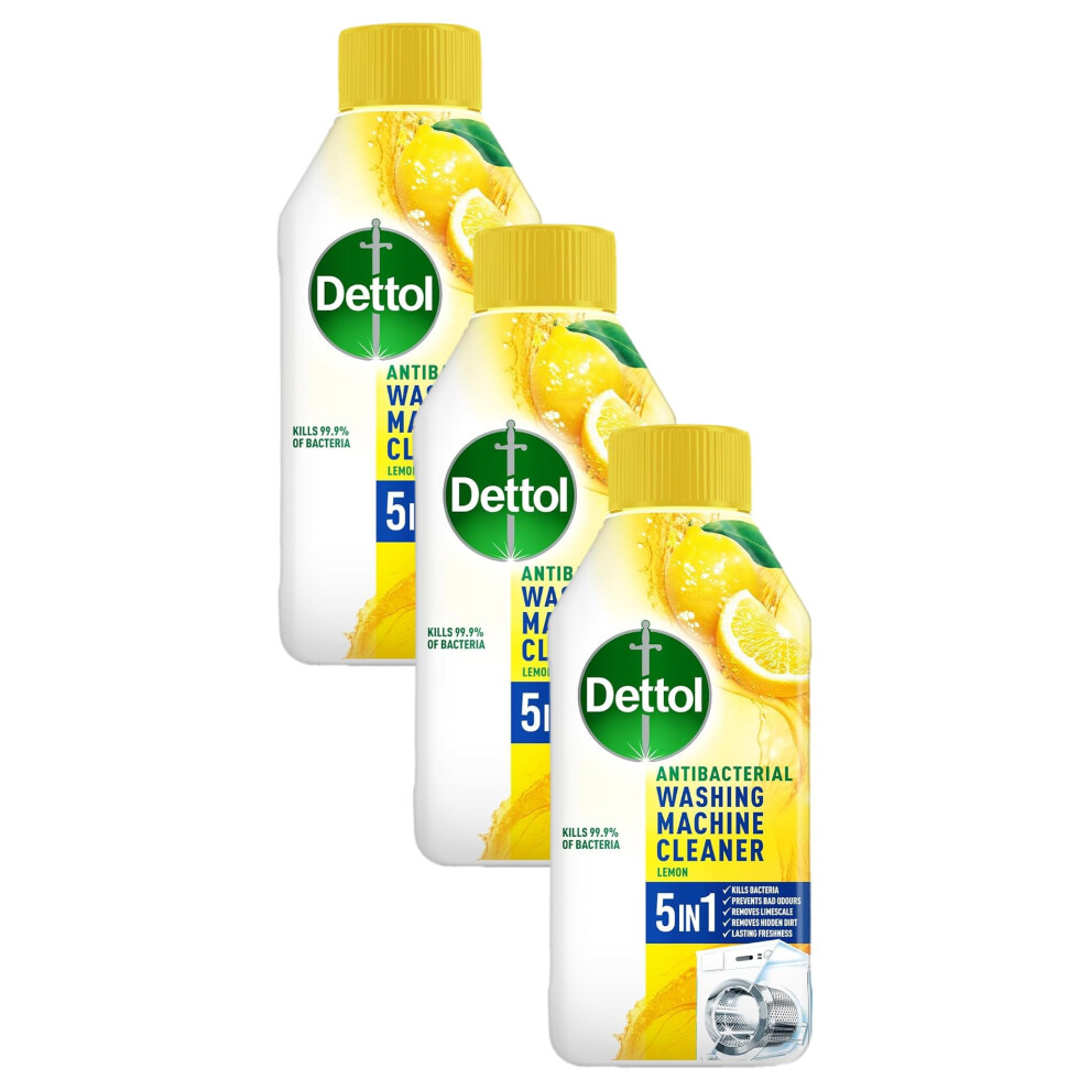 Dettol, Washing Machine Cleaner, Lemon Scent, 250ml, Antibacterial, Removes Bacteria, Bad Odours, Limescale and Hidden Dirt, Lasting Freshness, Kills 99.9 Percent of Bacteria