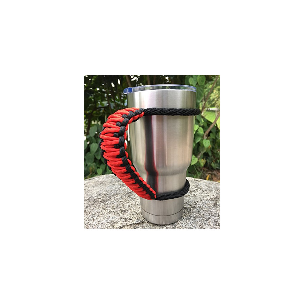 MOCE Handmade Paracord Handle for Yeti/Rtic/Ozark Trail Rambler 30 Oz Tumbler. Red/Black