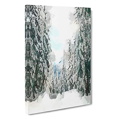 Big Box Art Winter Trail in Abstract Canvas Wall Art Framed Picture Print, 30 x 20 Inch (76 x 50 cm), White, Grey, Olive, Green, Black