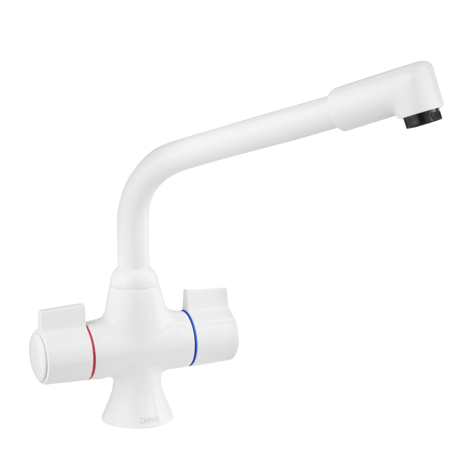 Deva Sauris SMS172/005 Kitchen Mono Sink Mixer Tap White Finish - 360° Swivel Spout - Large Easy Use Hot & Cold Handles - for Dual Single Basin - 12 Year Warranty
