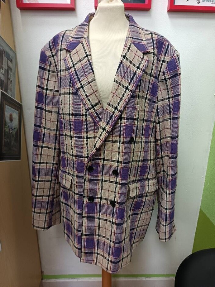 Devil's Advocate Plaid Blazer Beige & Purple Size: M