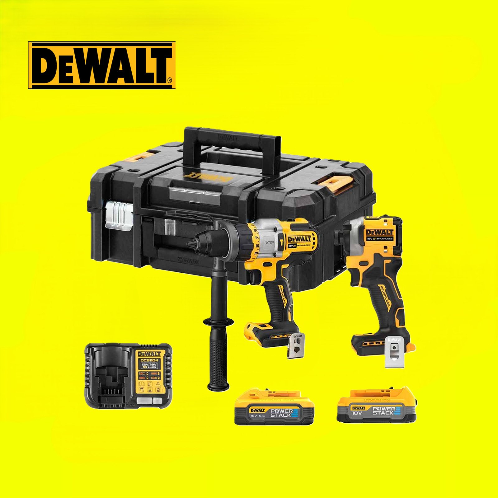 Dewalt DCK2050H2T 18v Powerstak Twin Kit XR Brushless Compact 2x5ah Combi/Impact